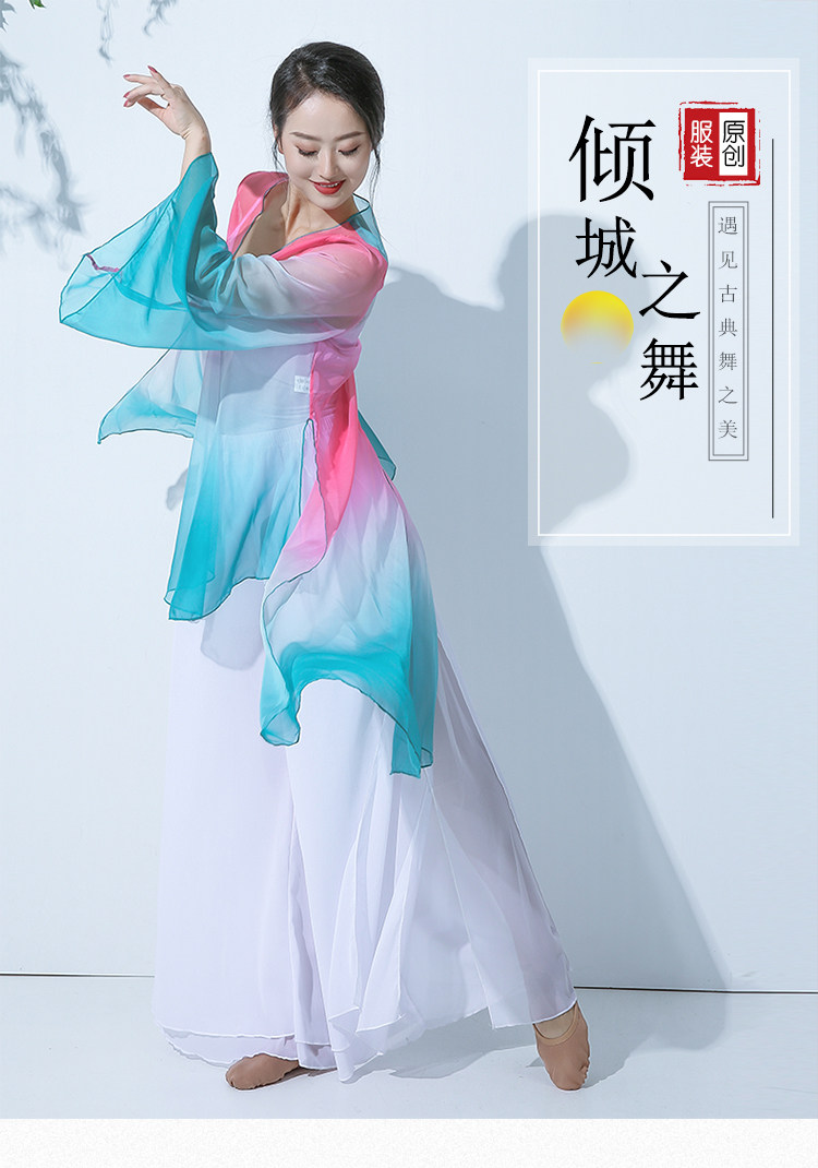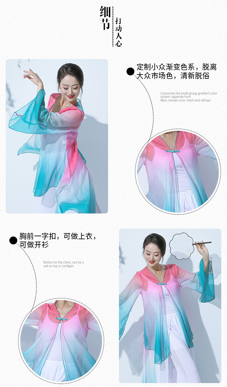 GD009傾城之舞古典舞紗衣練功服小眾漸變色天絲飄逸身韻外衫闊腿褲套裝