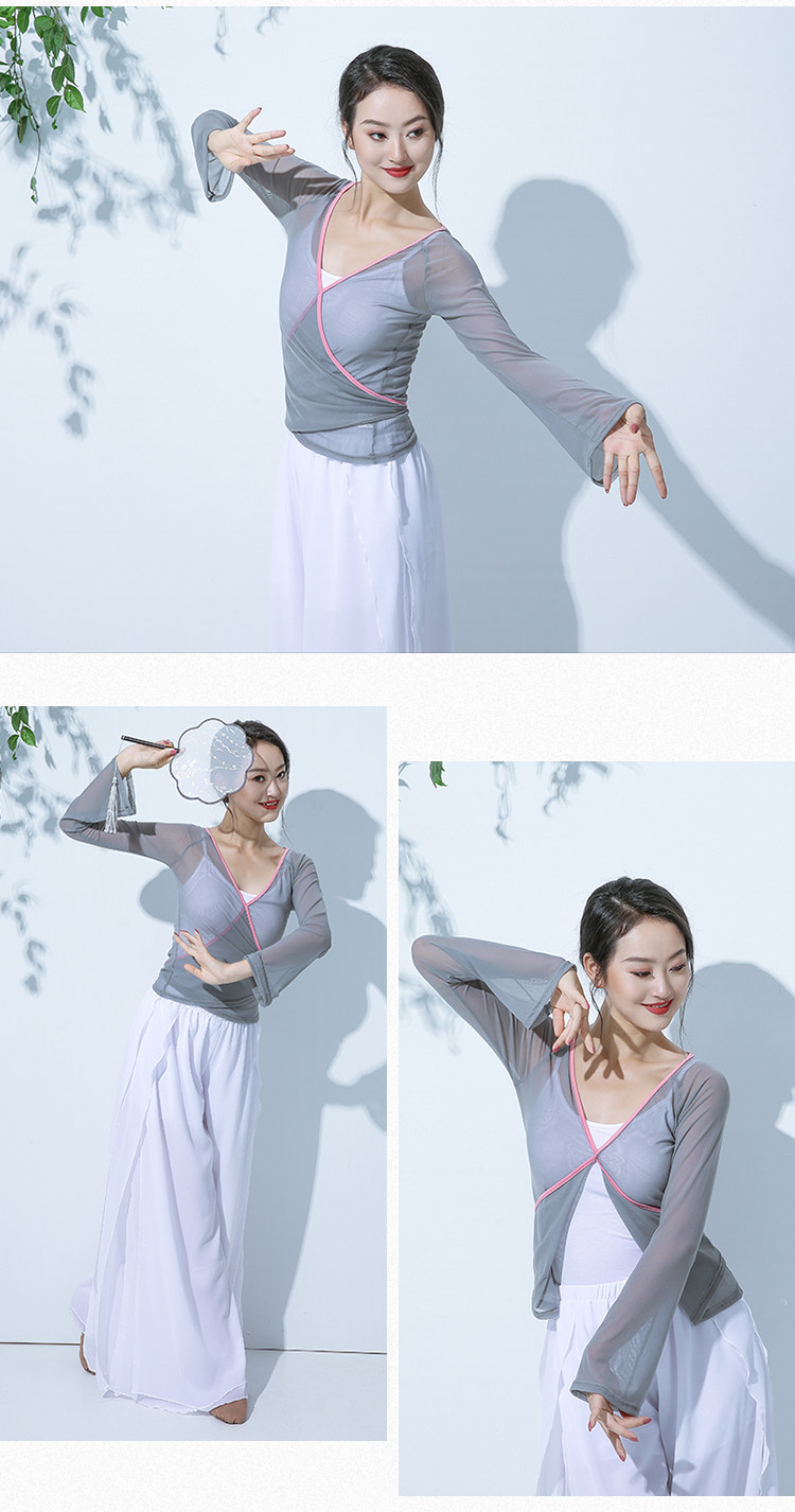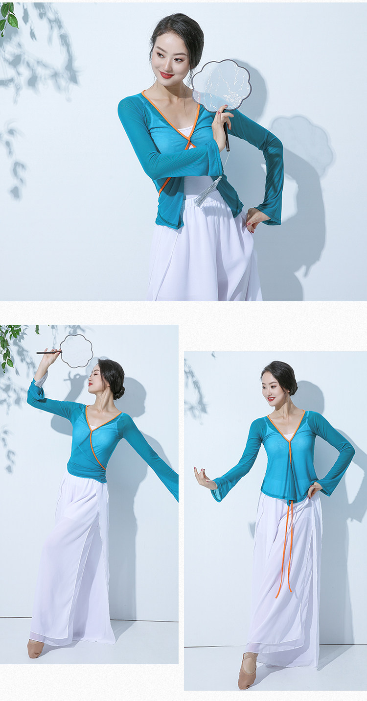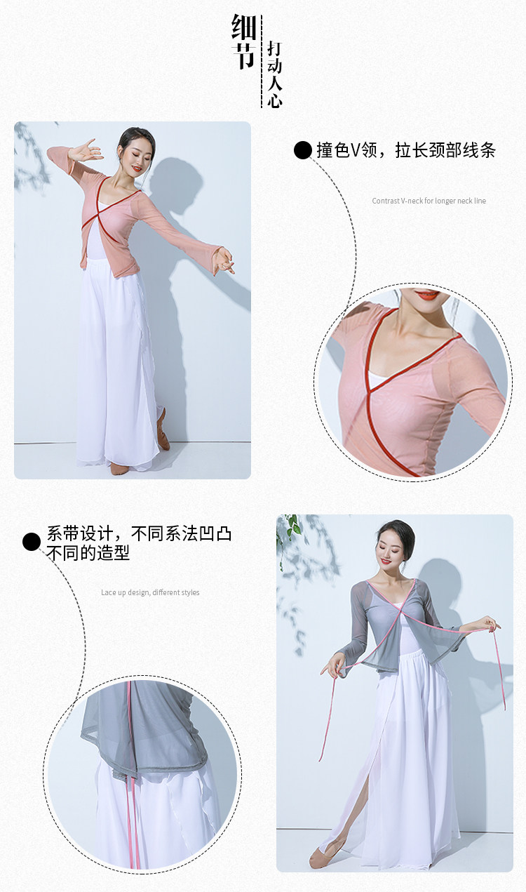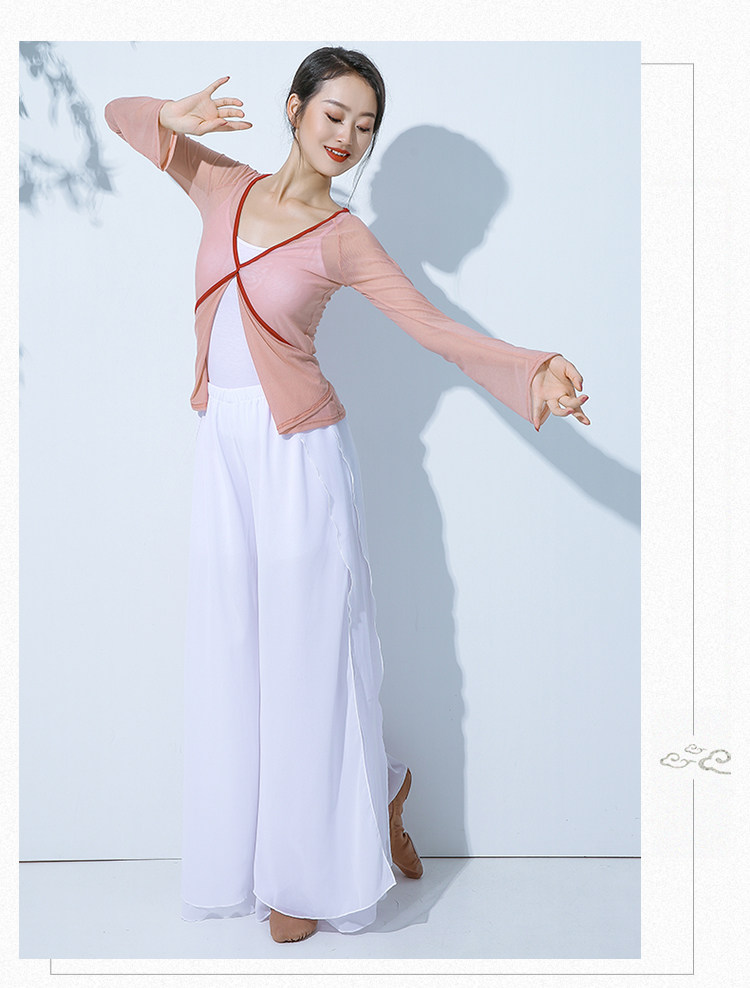 GD013傾城之舞古典舞練功紗衣身韻基訓芭蕾撞色綁帶彈力開衫闊腿褲套裝