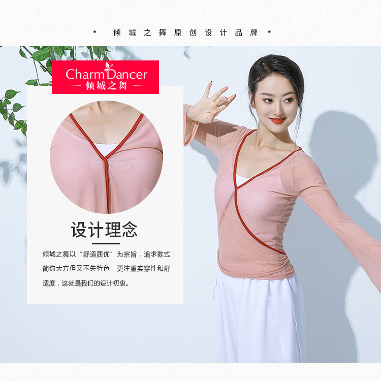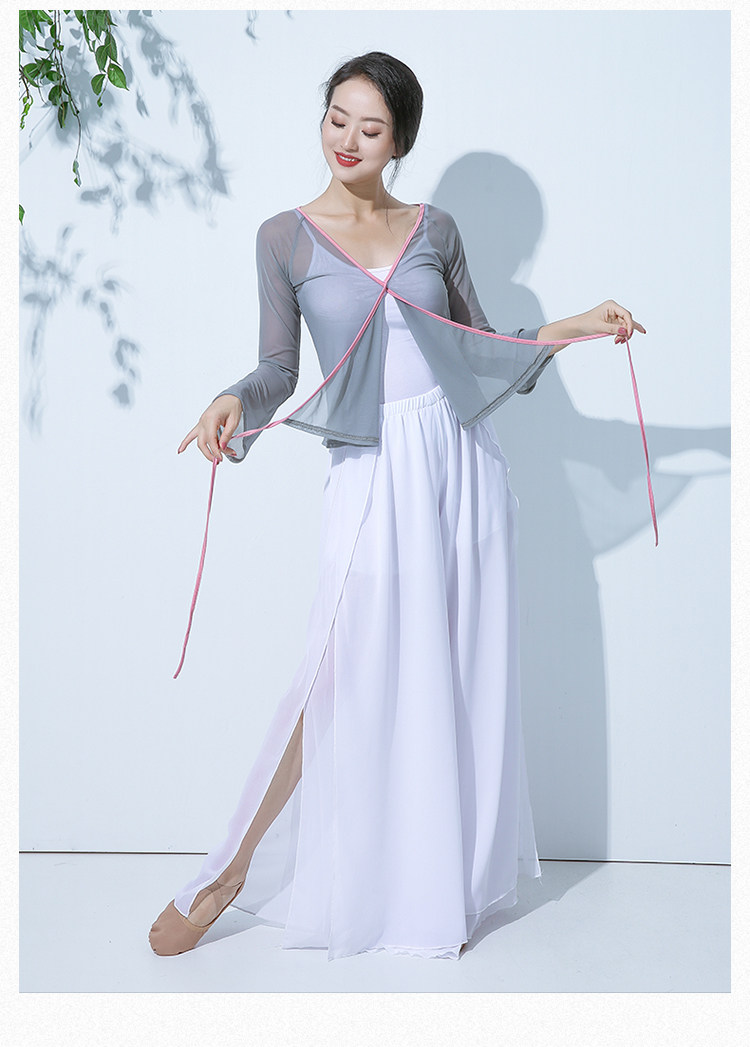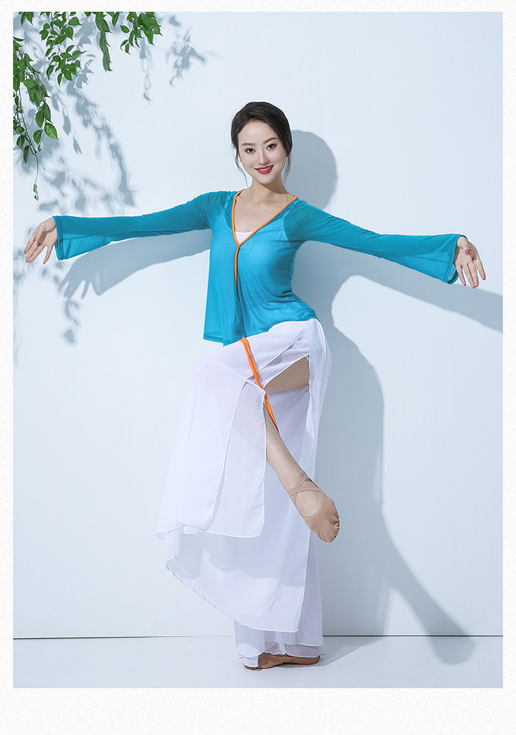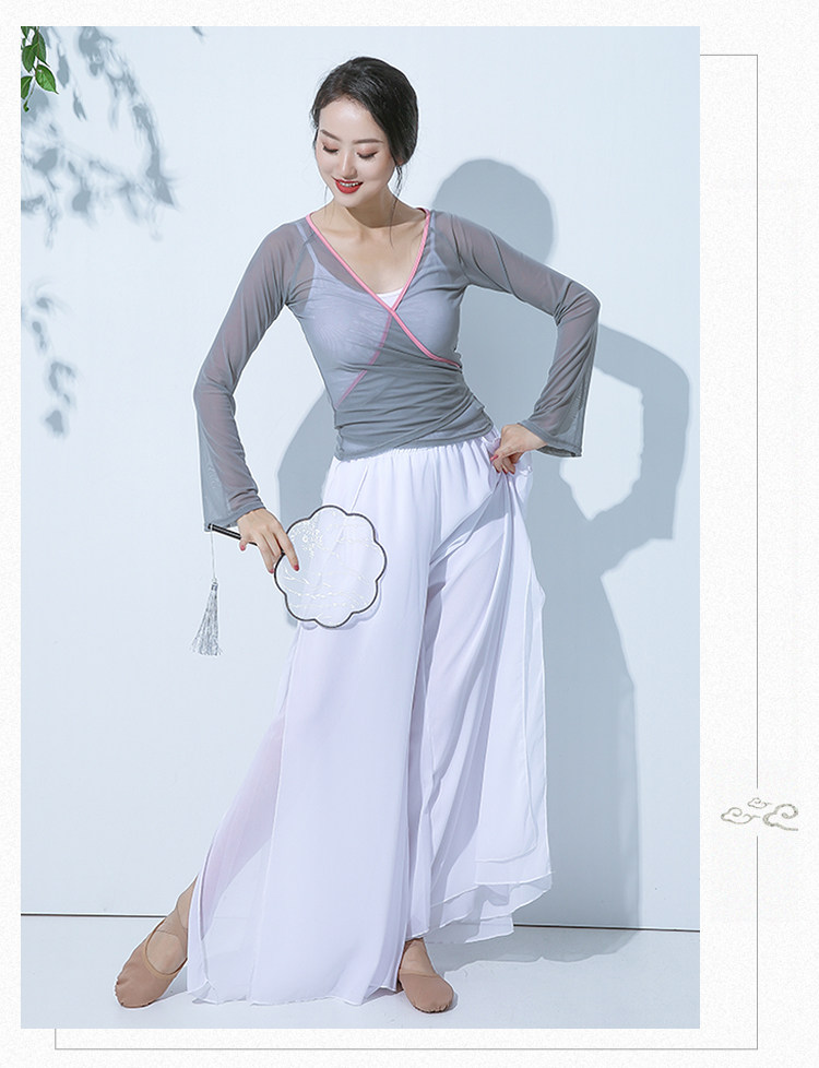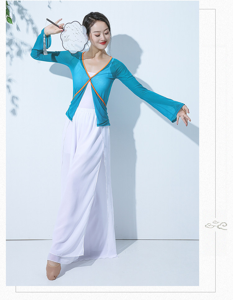 GD013傾城之舞古典舞練功紗衣身韻基訓芭蕾撞色綁帶彈力開衫闊腿褲套裝