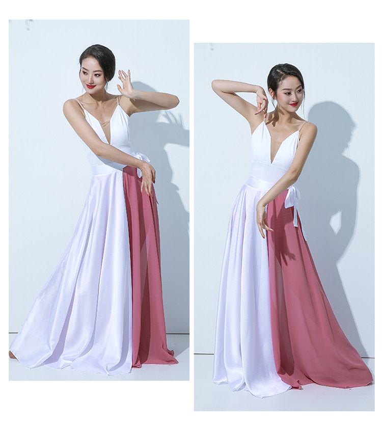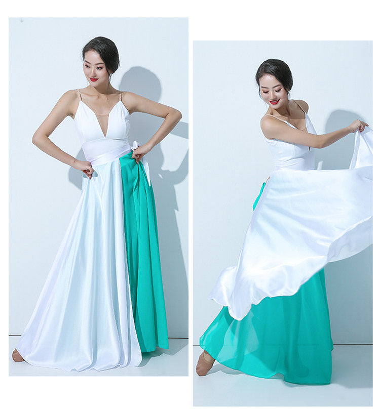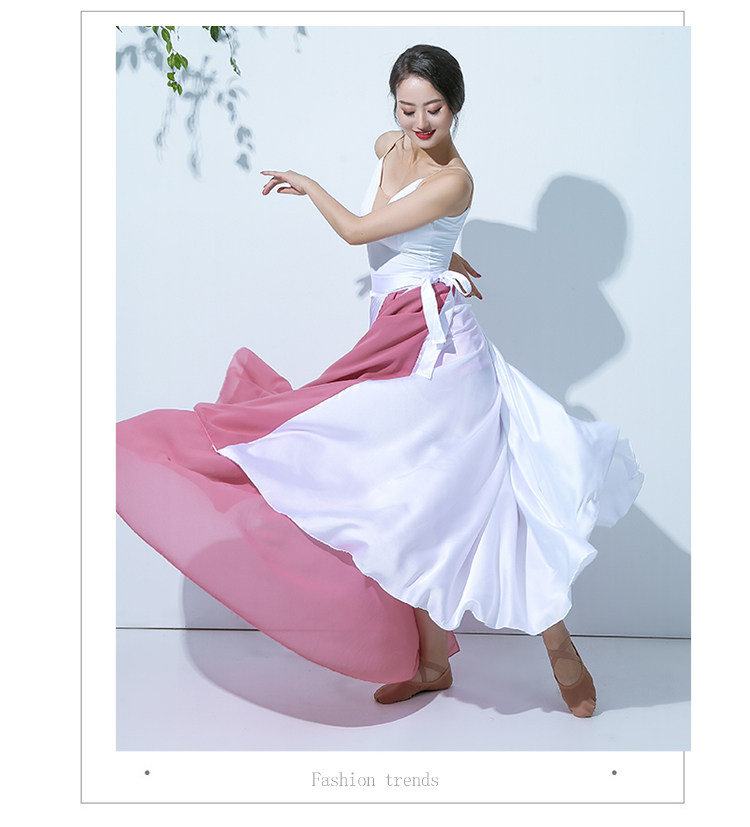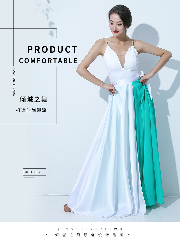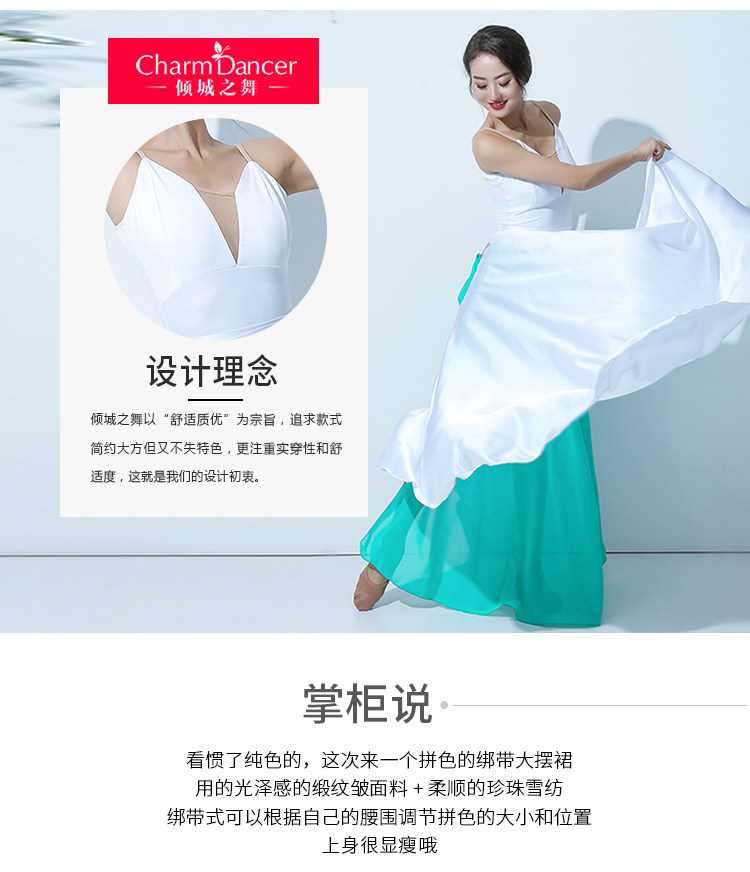 QZ007傾城之舞新款古典舞大擺裙 雙色拼色綁帶半身長裙 現代演出服裙