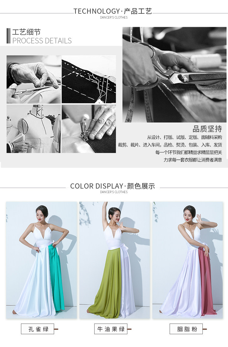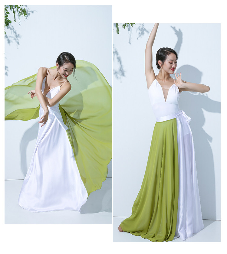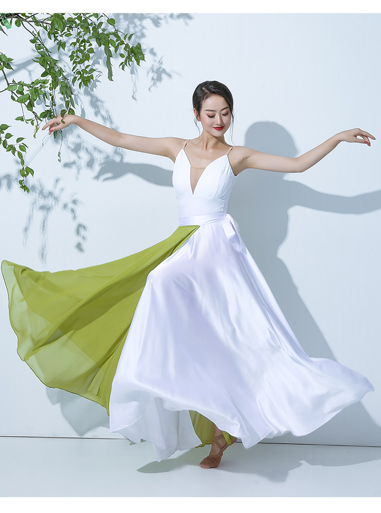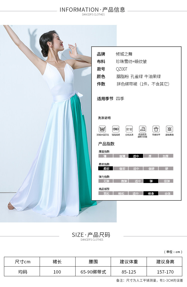 QZ007傾城之舞新款古典舞大擺裙 雙色拼色綁帶半身長裙 現代演出服裙
